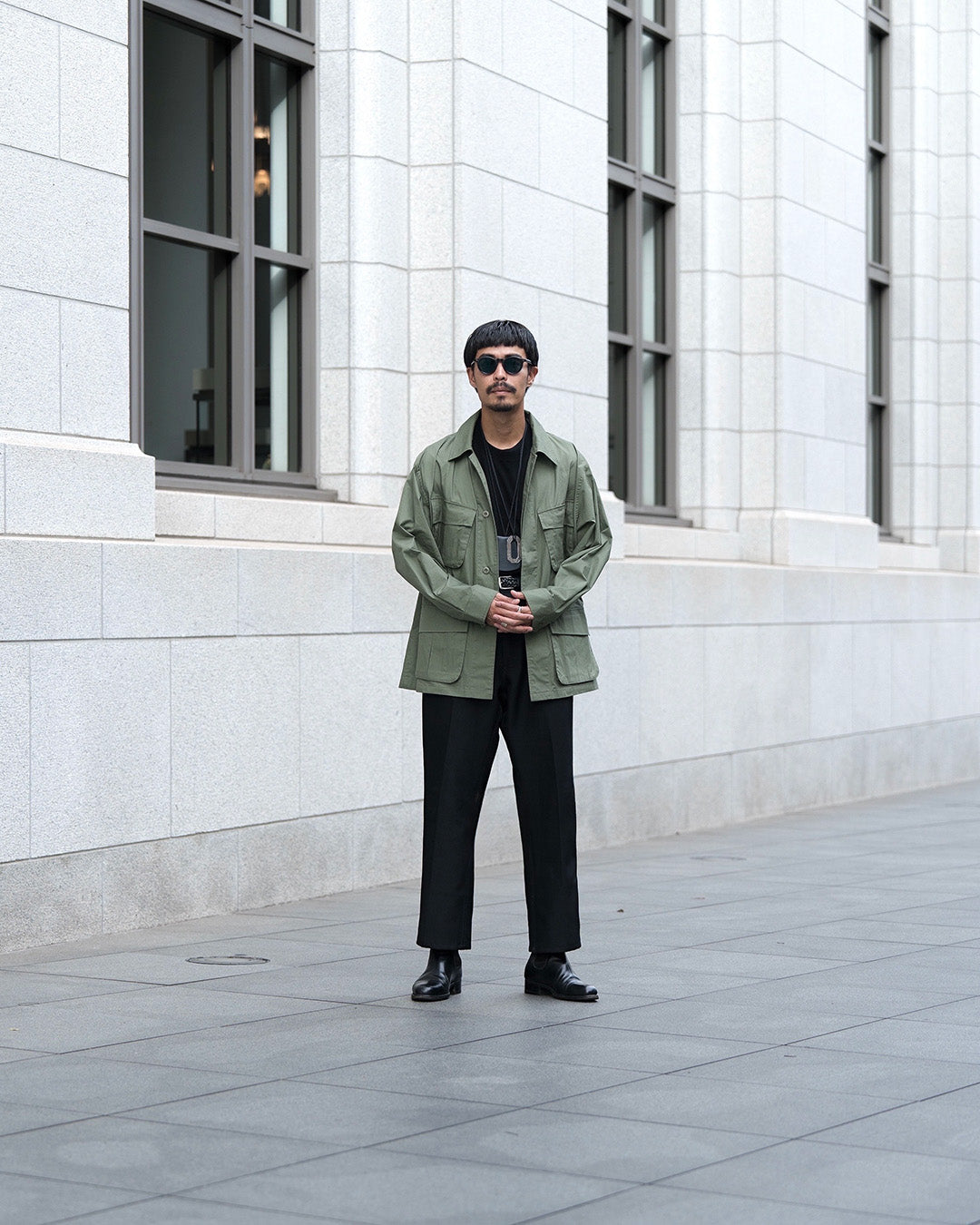 身幅を広めにとり、中に厚手のニットやインナーダウンを着用しやすいバランスで製作致しました。
