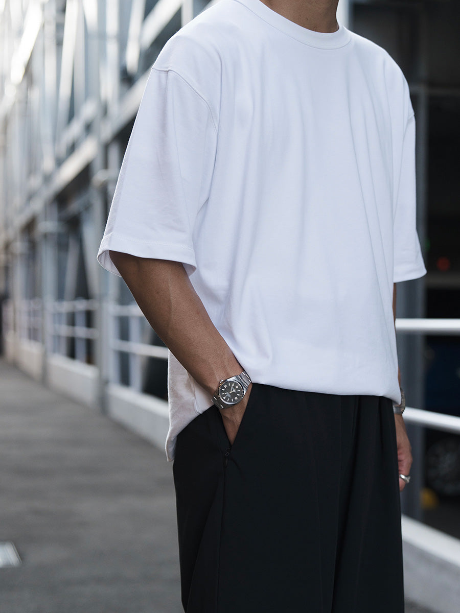 適度なリラックスフィットのためとんでもないオーバーサイズではなく、上質な大人の休日スタイルに合うアイテムです。