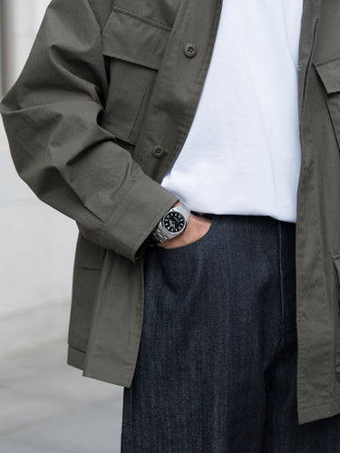 13ozのミドルウェイト生地を使用した、程よい厚みのある一本。 穿き込むほどに柔らかく馴染み、表情豊かな経年変化をお楽しみいただけます。